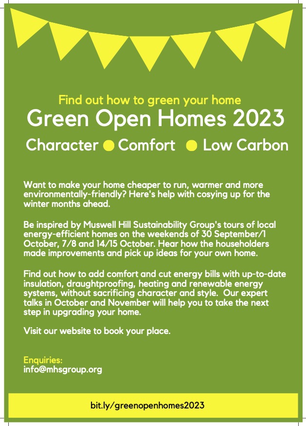 Posted on 10th Sep 202324th Sep 2023 by retrofitktMuswell Hill Open House Book tickets here for Muswell Hill Sustainability Group’s tour of energy efficient homes. Share this: Click to share on X (Opens in new window) X Click to share on Facebook (Opens in new window) Facebook Like Loading... Related
