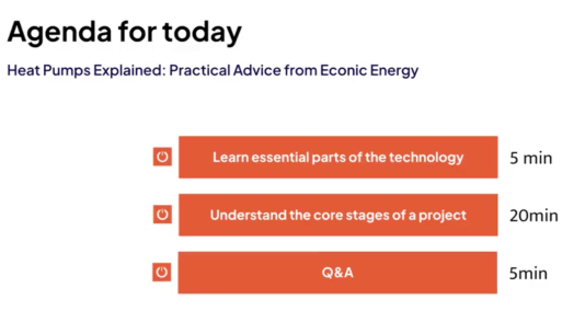 Thank you to Christoph Grossbaier of Econic Energy for his presentation on the practicalities of installing a heat pump in you home. You can view the recording here:https://drive.google.com/file/d/165SmQZ4EbNwple7K1RWaZk7FWn1AFa2Q/view?usp=drive_link